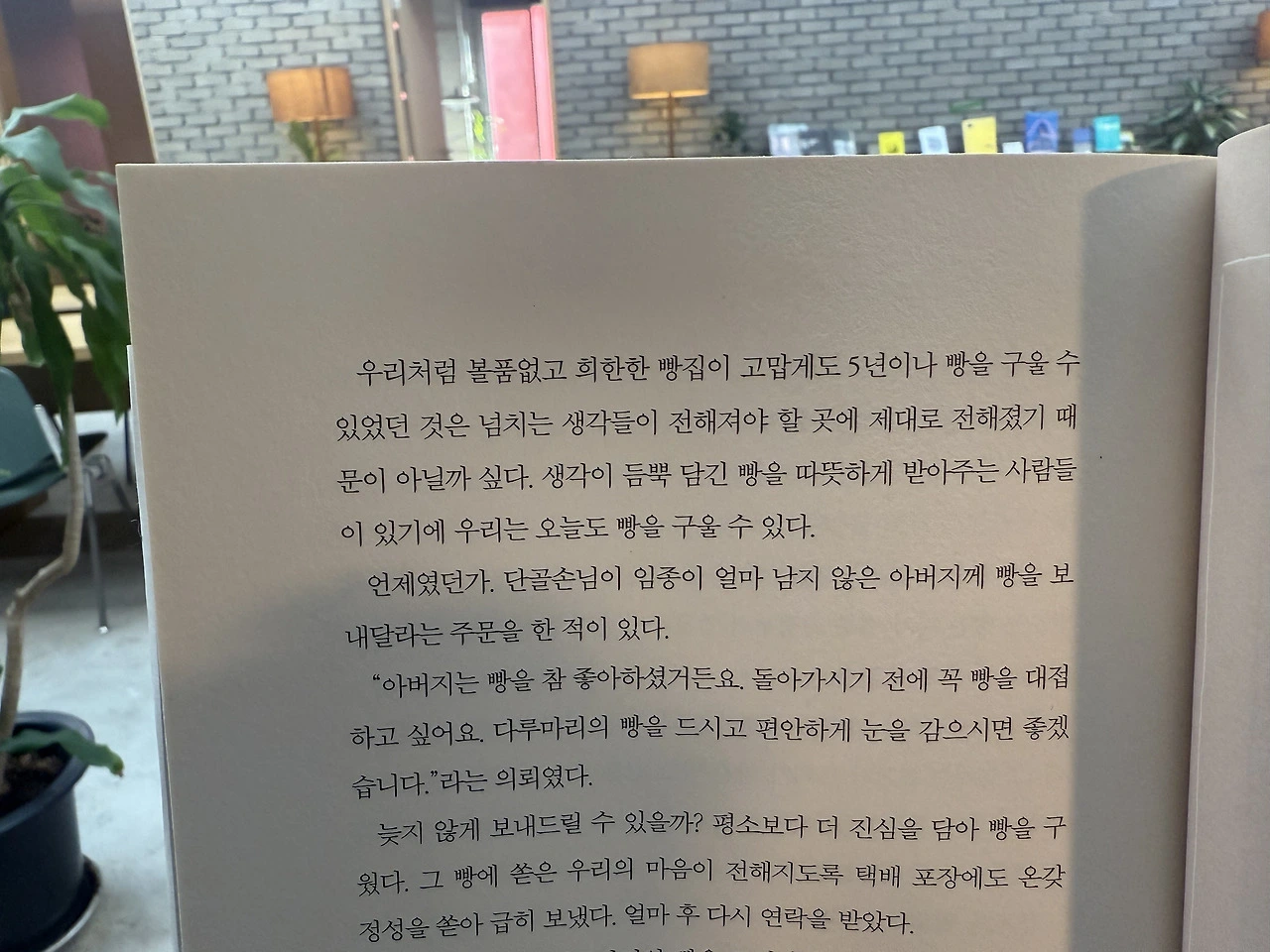 그래도 빵집을 유지할 수 있었던 것은 ‘넘치는 생각들이 전해져야 할 곳에 제대로 전해진 때문’이었다고 그래서 빵을 구울 수 있었다고 생각을 다졌었다.