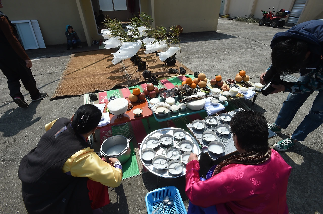 다른 해녀들이 잠수굿을 위해 '해신제 물에 들어' 작업한 해산물을 제상에 올리는 일은 제관들의 몫이다.