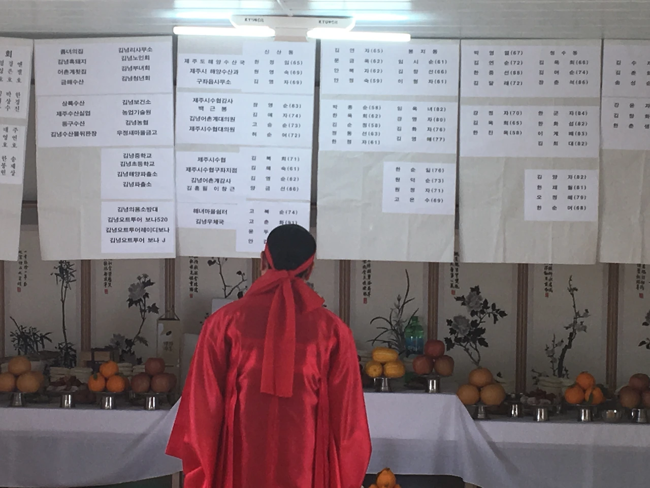 해녀들마다 표현에 조금씩 차이가 있지만 정성만큼은 한결같다. 제관이 되면 상가(喪家) 근처에도 가지 않는다. 길에서 좋지 않은 것을 볼까 외출도 삼가고, “남편 옆에도 가지 않는다”고 했다. 꼭 그렇게 해야 한다는 규정은 없지만 “어려서부터 어머니나 다른 해녀 삼춘들에게 듣고 배운” 것들이다.