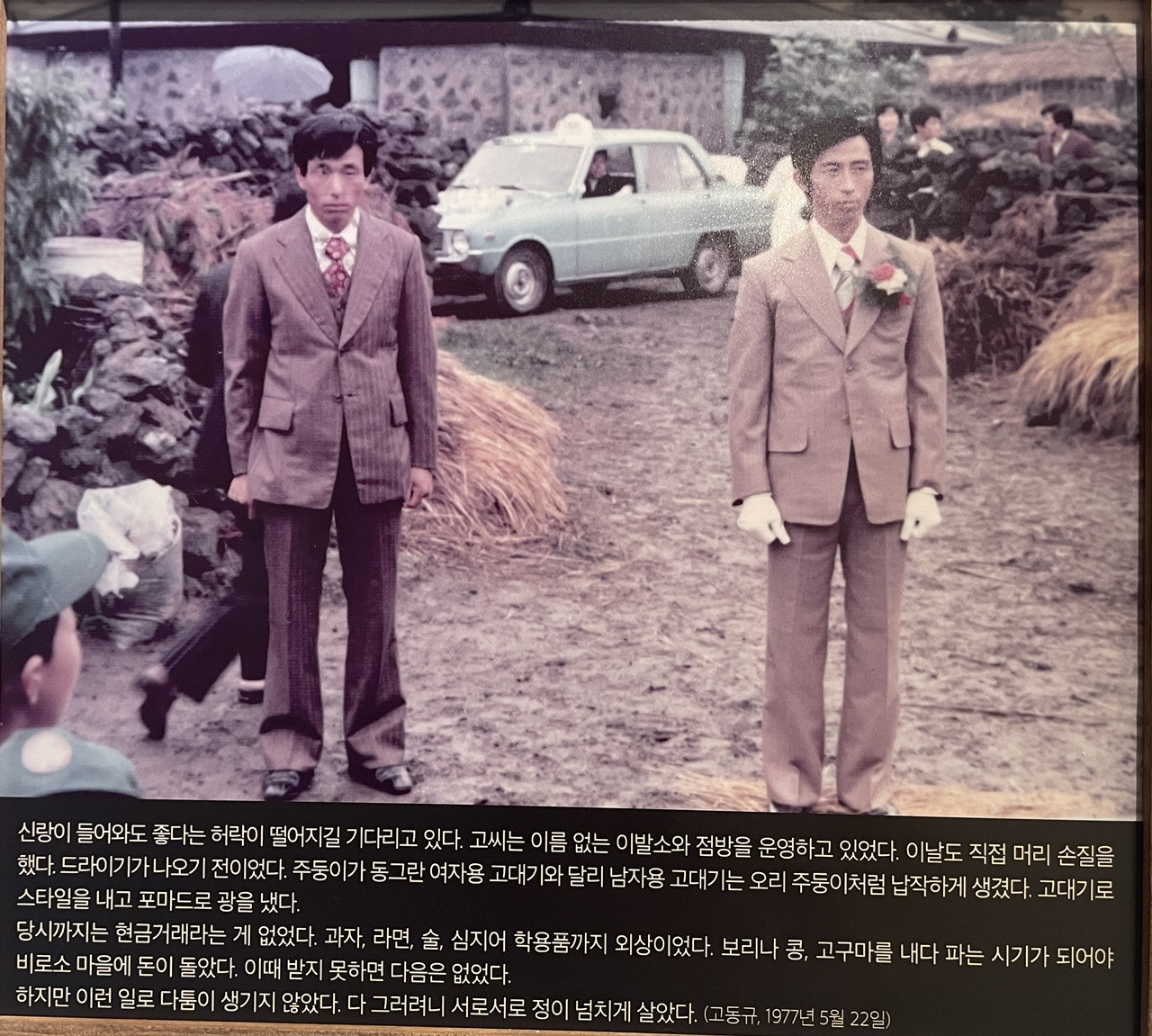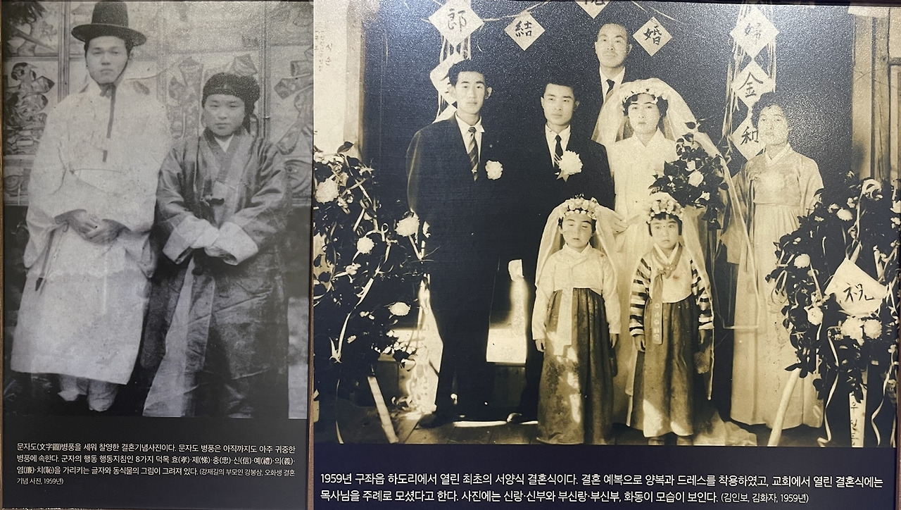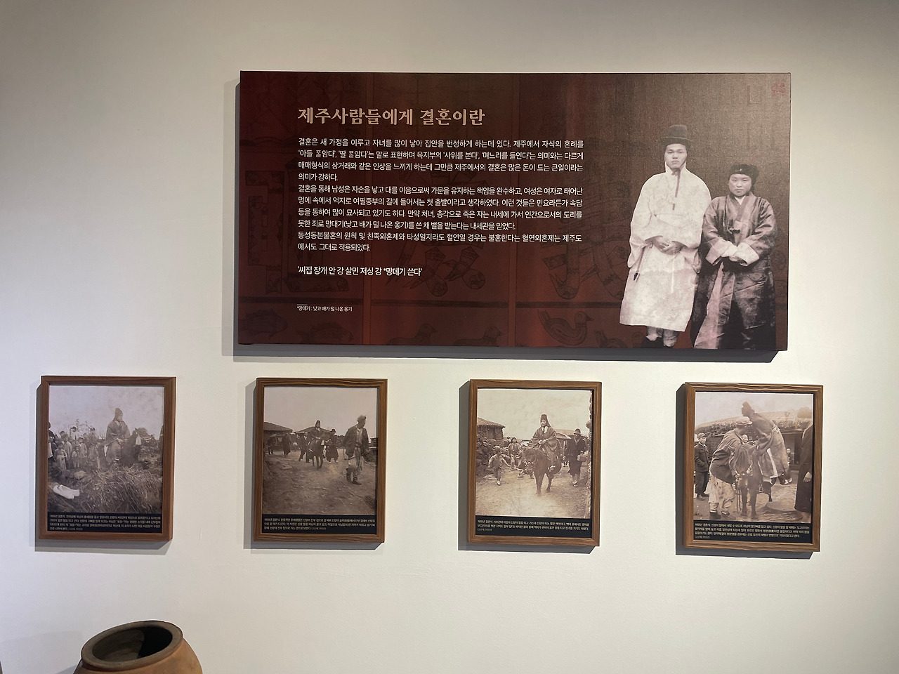 흑백과 색바랜 칼라 사진들 속의 혼례 중 가장 오래된 것은 사모관대 신랑과 족두리를 쓴 신부가 등장한다. 1959년 구좌읍 하도리에서 처음 치러진 서양식 결혼식에는 곱게 단장한 화동도 등장한다.