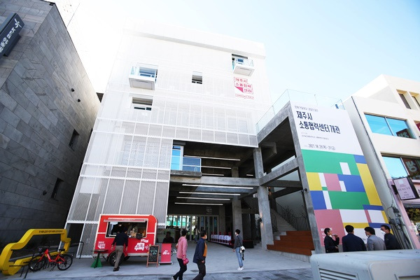 제주시 소통협력센터는 행정안전부의 사회혁신 '지역거점별 소통협력공간 조성 및 운영'사업을 통해 지난해 11월 문을 열었습니다. 제주시 원도심(관덕로 44) 옛 미래에셋대우 사옥을 리모델링하면서 현재의 모습을 갖추게 됐습니다.