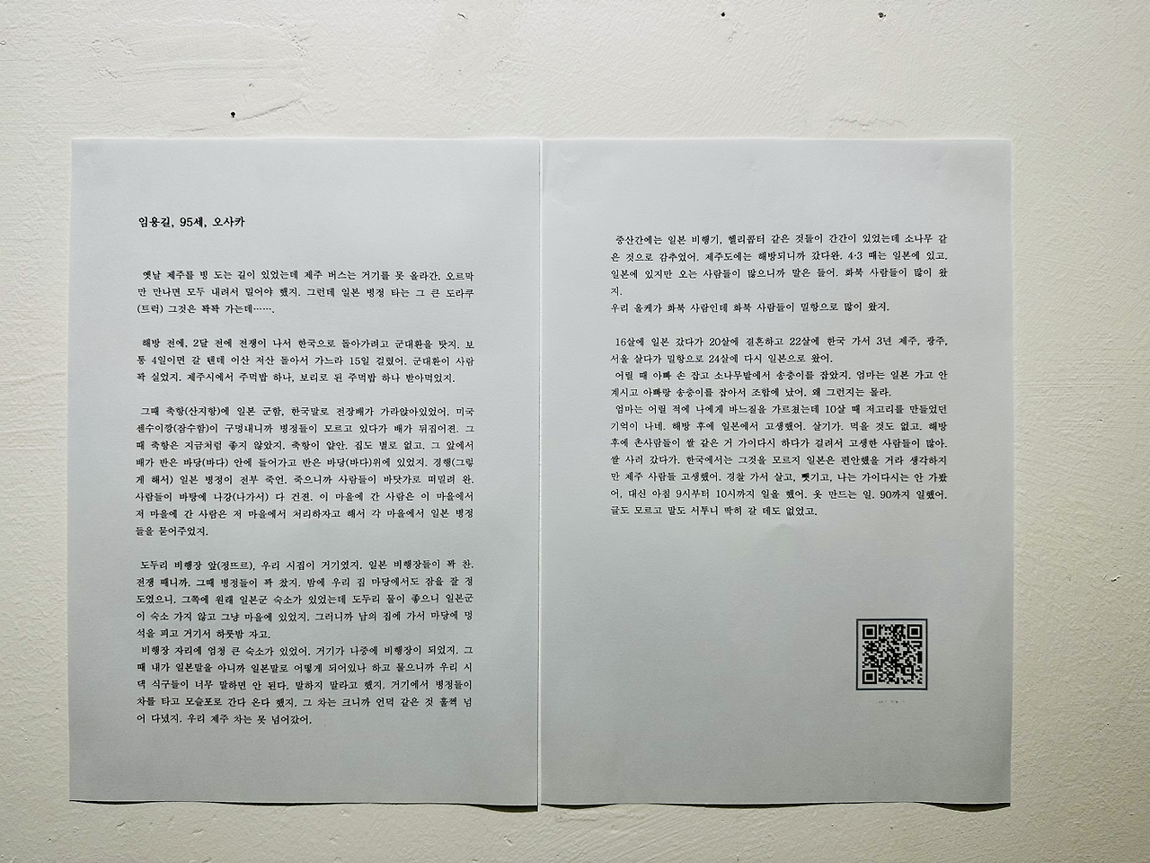 디아스포라. 전시장에 꺼내놓은 것들에는 진심이 담겨있다. 낮은 자세로 그들을 찾아 듣고 품으며 붓으로 기록해 왔던 과정은 시신경을 통해 들어와 폐부를 강하게 찌르는 말로는 다 설명 못할 그 것과 이어진다. 일제 강점기와 해방 직후 혼란기, 국가폭력의 피바람에 떠밀려 바다를 건넜던, 사람들이 있었다.