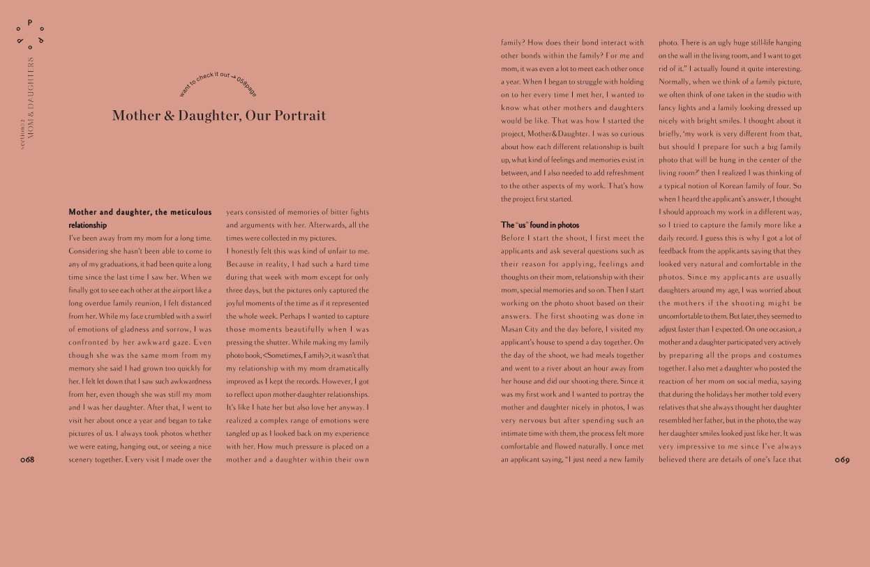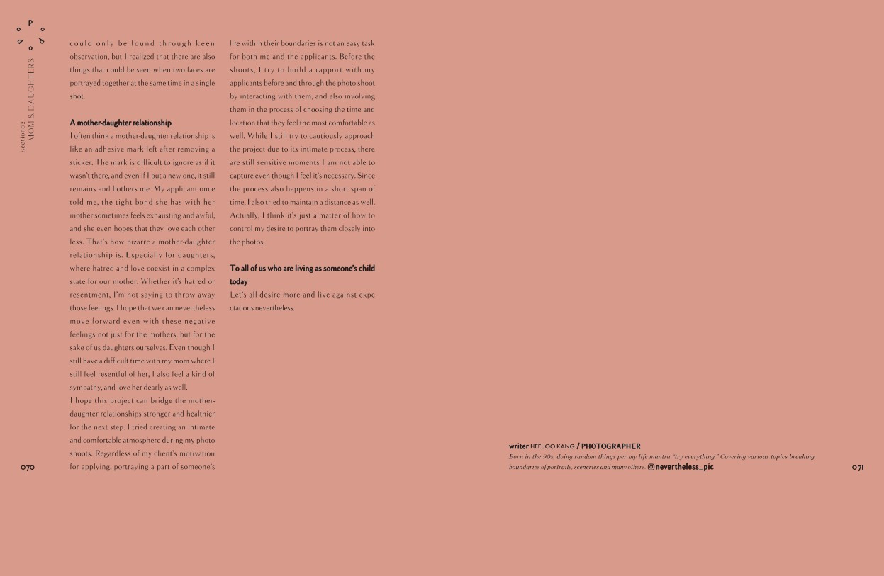 그렇게 시작하게 된 사진 작업이 <마더 앤 도터(Mother & Daughter)>에요. 각자의 관계는