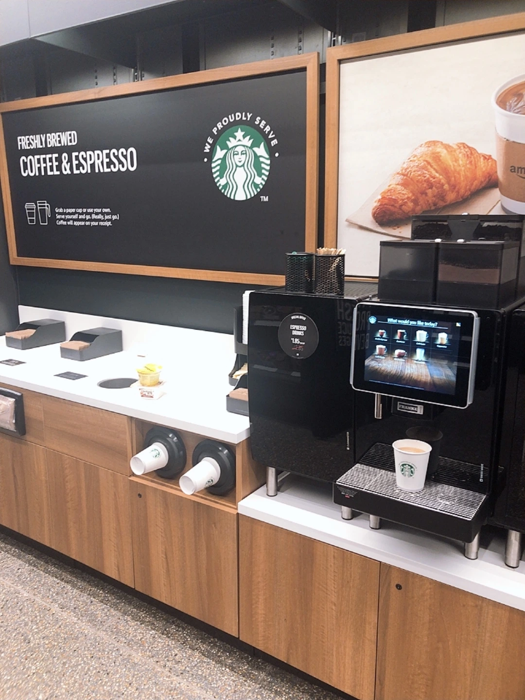 그렇게 우리는 각각 스타벅스 커피 한 잔과 시리얼을 들고 아마존을 나섰다. 20미터쯤 걸었을까 진동이 울렸다. 만약 영수증을 제대로 확인 안했다면 몰랐을 거다. 바로 알람을 확인한 덕에 정확하게 내 몫의 아이템들은 결제가 안되었다는 사실을 확인했다. 순간 우린 “뭐지?” 당황한 얼굴로 마주했고 다시 돌아갔다.