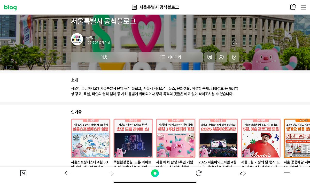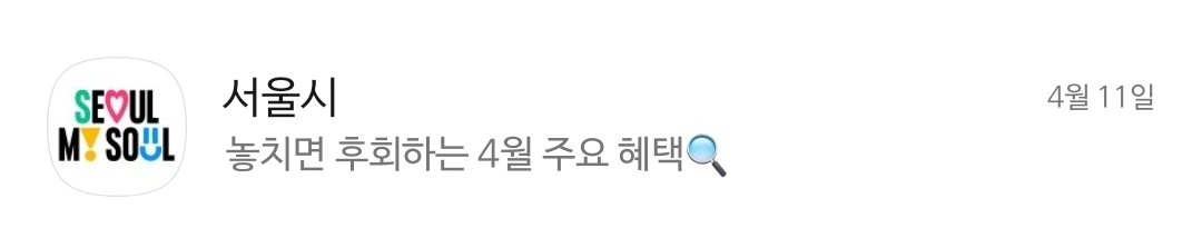 나는 서울에 살고 있기 때문에 서울시 관련 주요 정보들을 업로드해주는 기관을 팔로우하고 알림을 받아보고 있다.