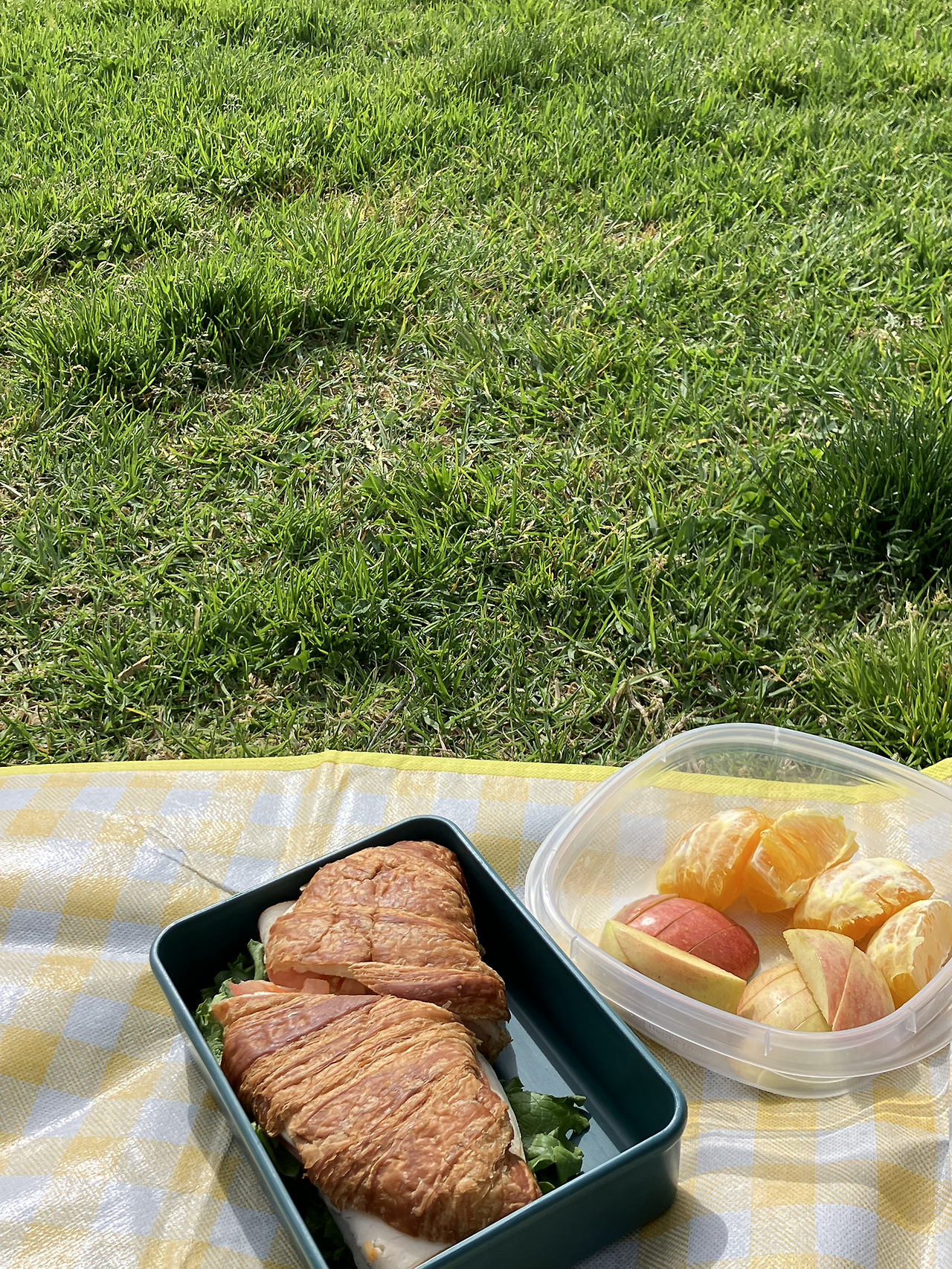 그냥 근처에서 빵을 사 가도 되지만 굳이굳이 도시락에 담아 와서 깎아 온 사과와 오렌지와 함께 굳이굳이 산 돗자리와 함께 피크닉을 했다.