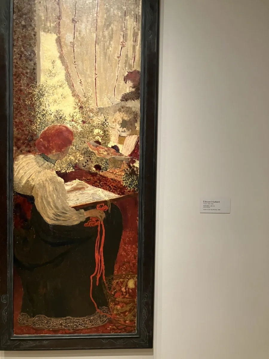 별 뜻은 없고 그냥 색감이 좋아서 찍었다. Embroidery는 ‘자수’라는 뜻을 가지고 있는데, 작품 속에서도 두 명의 여성과 자수를 놓는 듯한 장면이 연출되고 있다. 설명을 더 찾아 보니 이 작품은 뷔야르 특유의 친밀하고 섬세한 분위기를 잘 나타내는 작품으로 평가받는다고 하네요.