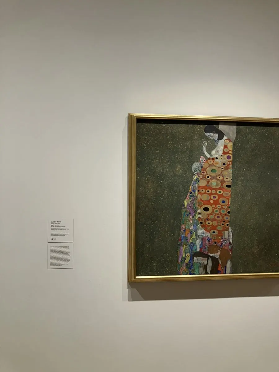 우리는 아이를 키우는 여성에 대해서는 굉장히 아름답게 묘사하지만, 임신한 여성에 대해서는 잘 다루지 않는 경우가 대부분이라고 한다. 이 설명을 보고 곰곰 생각해보니 회화 속에서도 아이를 키우는 어머니 라는 테마는 많이 본 것 같지만 임신한 여성을 전반으로 내세운 그림은 딱히 본 적 없는 것 같아서 신기했다. 이런 점에서 임신한 여성을 주제로 작품을 만든 클림트의 Hope II는 의미가 있다고 설명이었는데, 설명으로 작품의 의미를 더 생생하게 느낄 수 있어서 좋은 경험이었다.