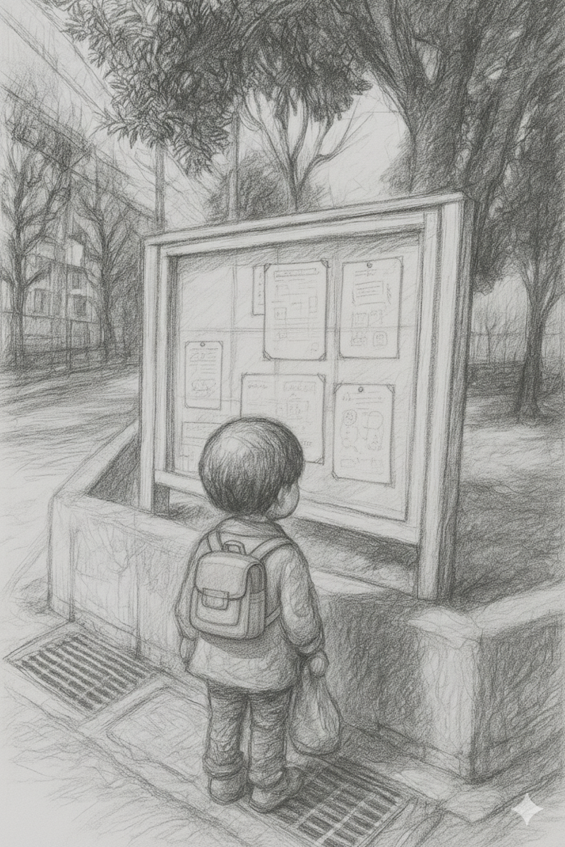 상점회, 자치회 같은 지역 주민 커뮤니티를 유독 중시하는 일본의 골목에는 게시판이 참 많다. 언제부터인가 아이는 게시판이 나올 때마다 발걸음을 멈추고 한참을 들여다봤다. 이 동네 소식은 내가 다 접수하겠다는 듯한 얼굴로.