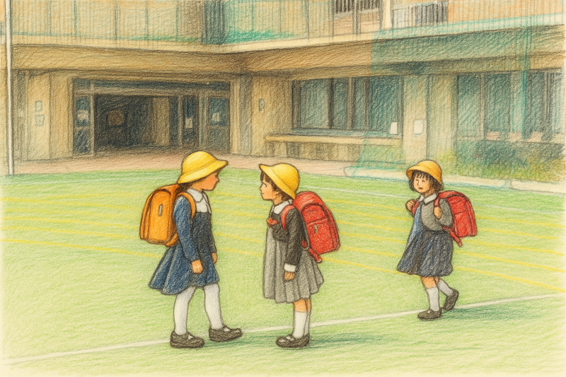일본 드라마에서 막 튀어나온 듯한 각진 란도셀 가방, 1학년의 특권인 햇병아리색 모자.