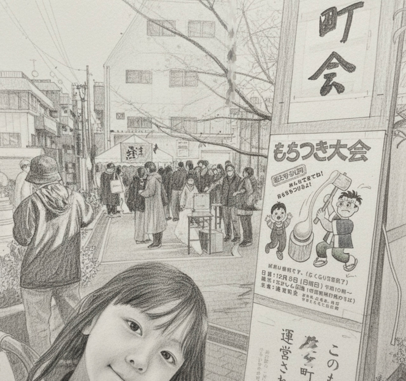 휴, 다행이다. 구물 꾸물 내리던 눈도 그쳤고, 공기도 선선한 것이 걷기에 딱이다. 오늘은 아이가 동네 상점회 게시판에서 보고 찜해 뒀던 모찌츠키 다이카이(もちつき大会:찹쌀떡을 찧는 전통 행사)에 가 봐야겠다. 그게 끝나면 화과자만큼이나 좋아하는 명란 바게트빵을 사러 옆동네에 갔다가, 돌아오는 길에 어린이 도서관에 들러서 책을 반납해야지.