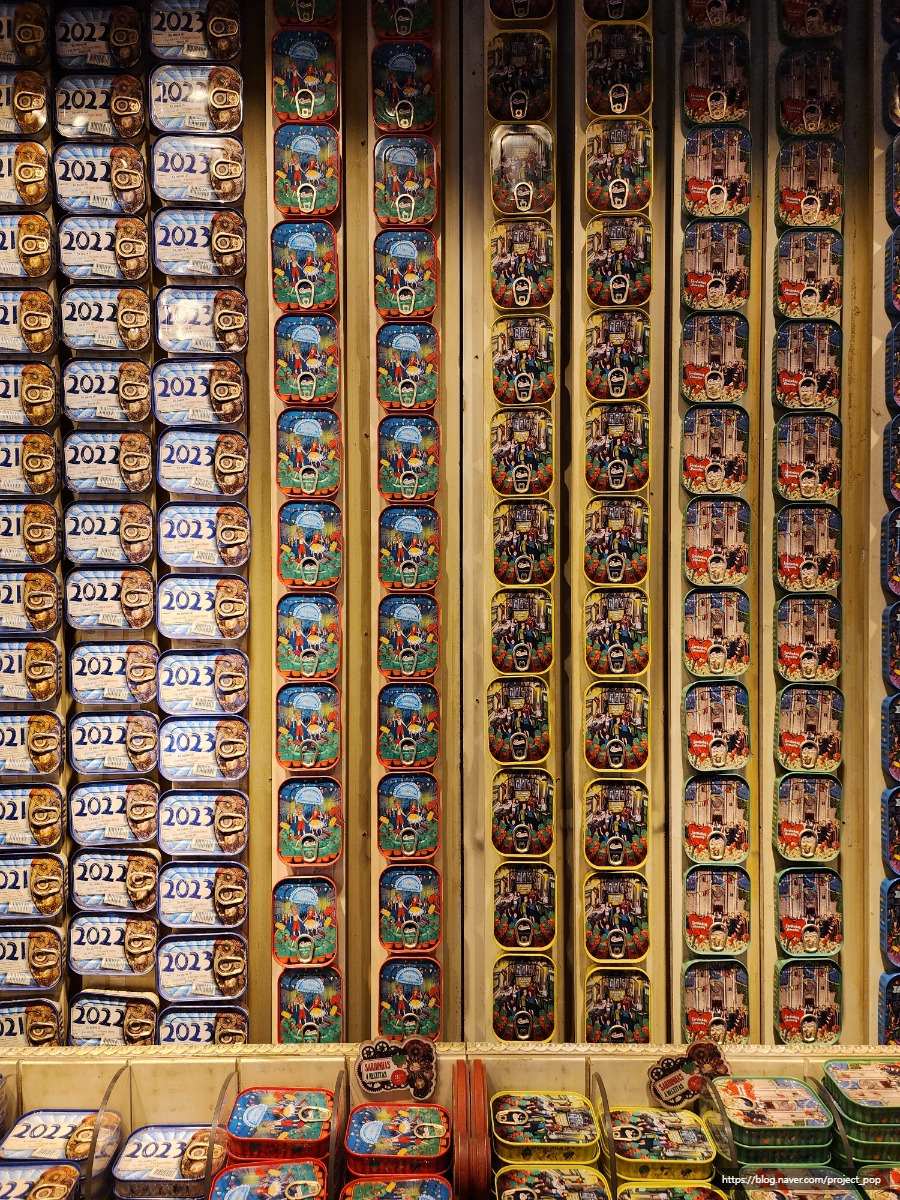 굳이 예쁜 통조림 캔을 뜯어 통조림 맛을 향유할 것 같지는 않지만 (포르투갈에서 파는 통조림들은 안이 어떤 모양일지 무서워서 못 열어볼 것 같다. 시간이 지날수록 더욱 그럴 듯.) 기념품으로 하나쯤 챙겨가고 싶은 모습이다. 연도별 통조림도 팔고 있으니 '방문한 해'의 통조림을 구매하는 것도 포르투갈 여행의 추억을 보관하는 방법이 될 수도.