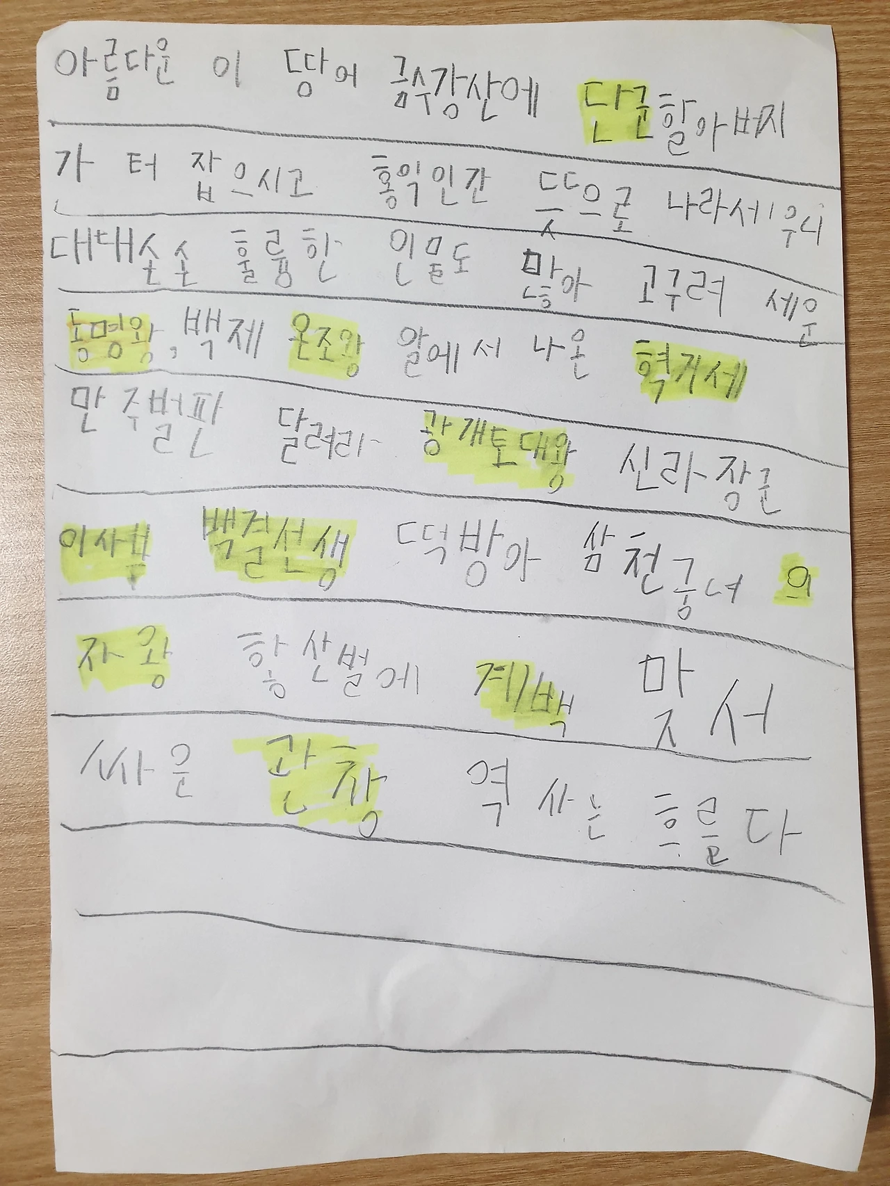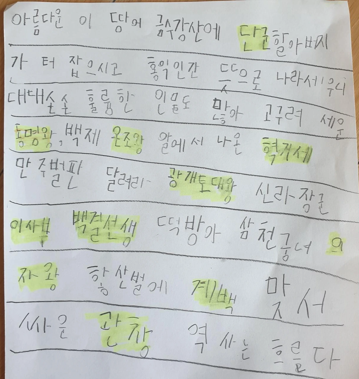 아름다음 이땅에 금수강 산에 장군 할아버지 가 처다보시고