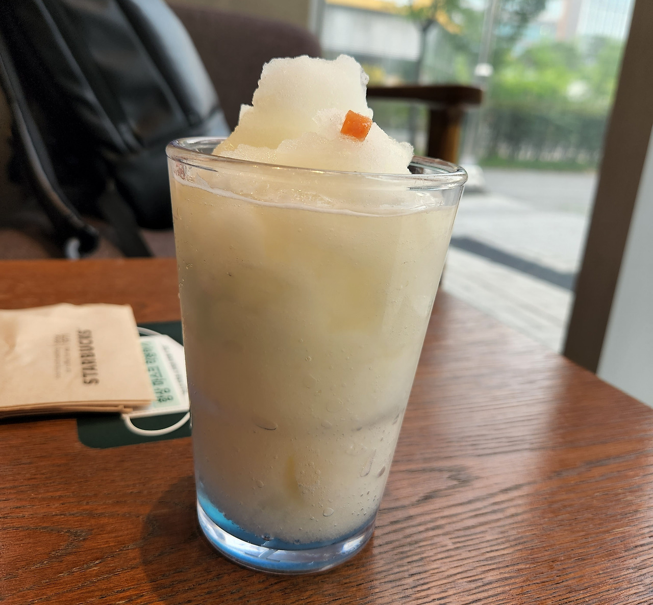 주문한 음료가 나왔다. 서머 픽 시트러스 블렌디드, 외우라고 해도 못 외울 이름이다. '이거요' 했으니 주문했다 싶다. 남편에게 자랑한다고 한 장 찍었다. 그저 사진을 위한 사진이면서 말이다.