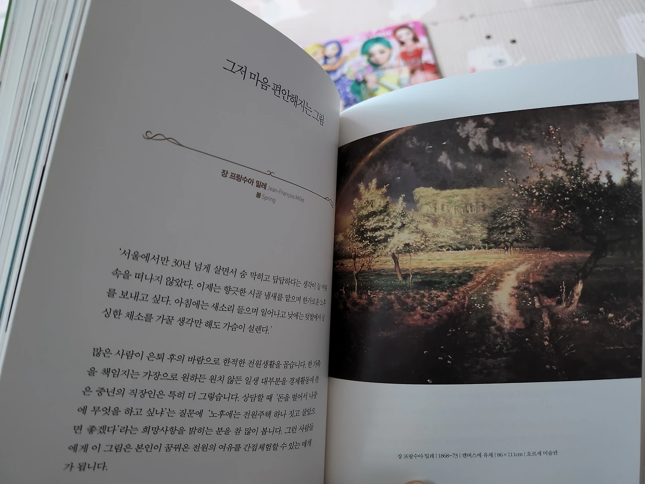 <그림의 힘>이라는 이었다. 그림이 많았고 어떨 때 보면 좋을지 적혀 있었다. 표지부터 마음에 들었다. 책을 다 보진 못했지만 곳곳에 시선을 멈추게 하는 그림이 있었다. 곁에 두고 이따금씩 봐야겠다.