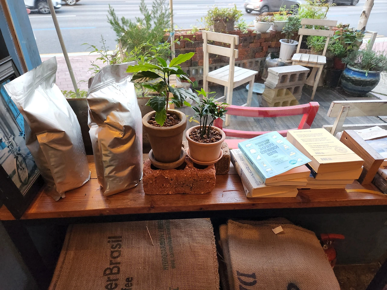 고민하다 문을 열고 들어섰다. 내부가 생각보다 아늑하다. 다락이 있다. 올라가 보고 싶단 생각이 들었다. 지금은 운영 안 한다고 본 것 같기도 하다. 아이스로 주문했다가 따뜻하게로 바꿨다.