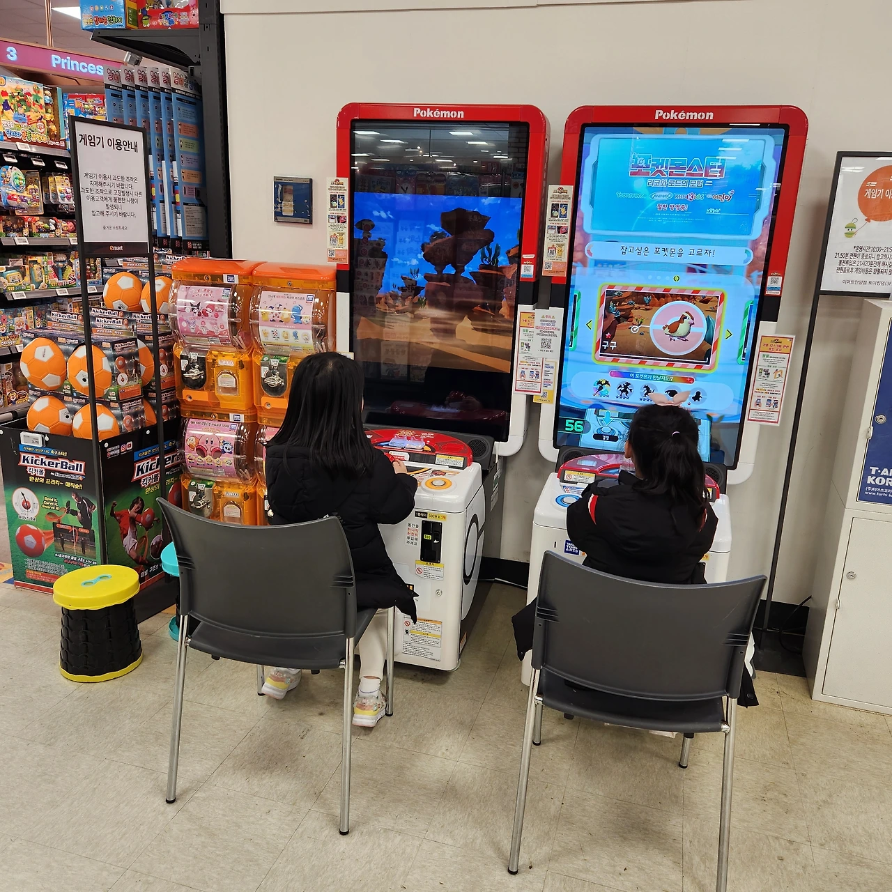 덧붙이자면 포켓몬 가오레 게임은 한 판에 천오백 원이다. 포켓몬을 별 하나부터 별 다섯 개까지 아주 다양하게 칩으로 만들었다. 게임을 시작하면 칩을 하나 주는데 보통은 별 하나에서 별 두 개짜리다. 그 칩이나 가지고 있던 칩으로 배틀해서 포켓몬을 잡는다. 포켓몬이 잡히면 다시 천오백 원을 넣어야 칩으로 꺼낼 수 있는 아아주 신나고도 매우 현금이 털리는 게임님이 되시겠다. 우하하하하.