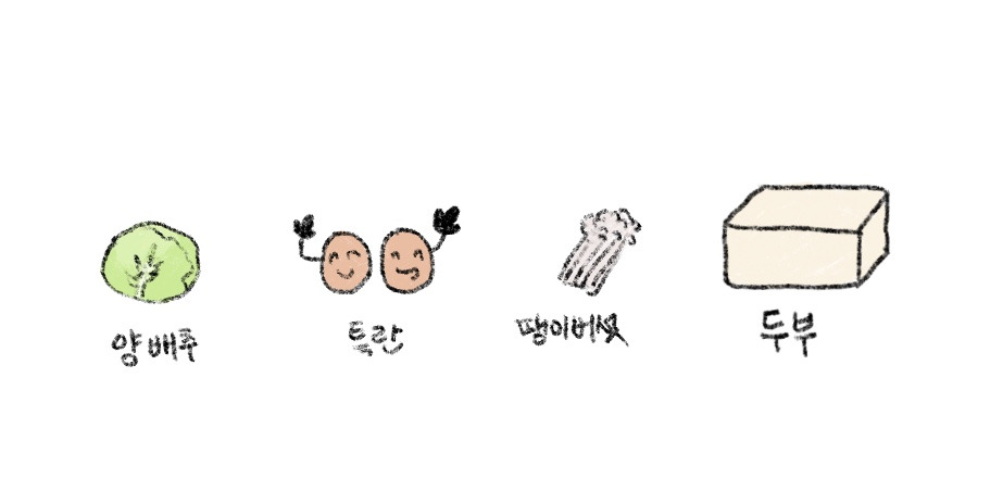 양배추, 특란, 팽이버섯, 두부