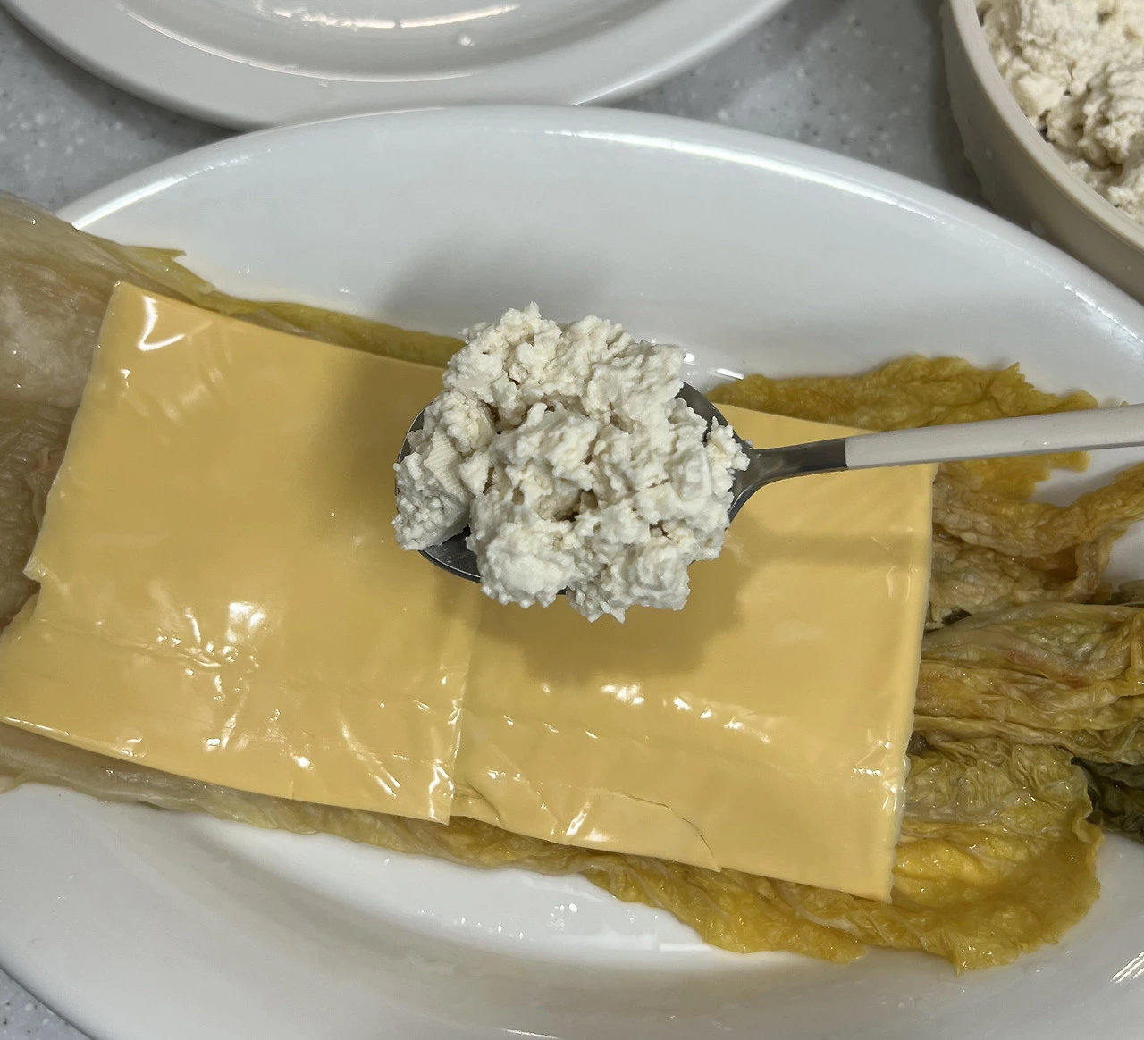포랑이 : 자자~~ 그다음에 두부를 치즈 위에 올려주고