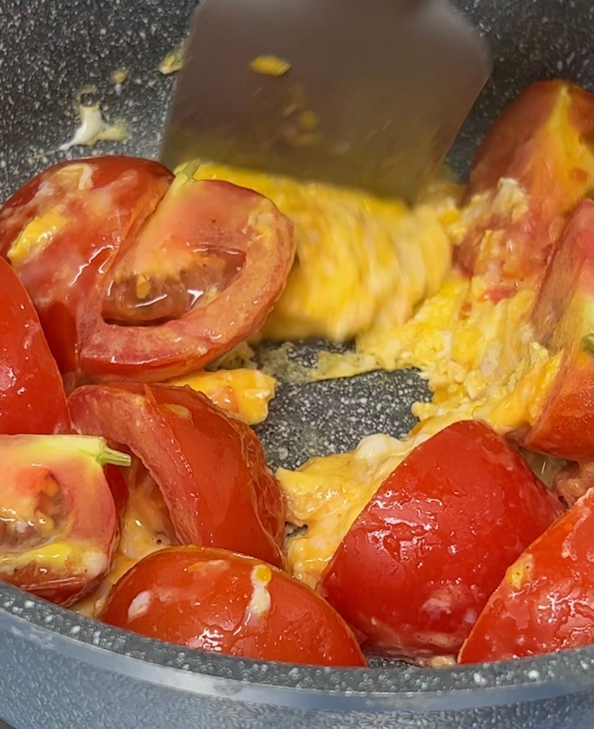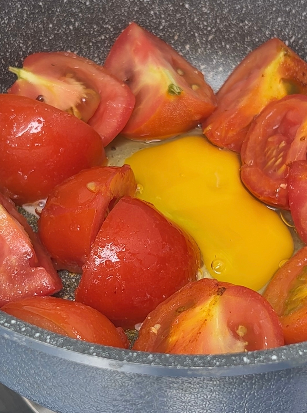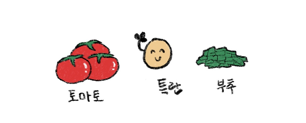 포랑이 : 그다음에 프라이팬에 토마토를 볶아줍니다용~!