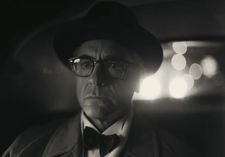 융합의 서사(컬러)는 오롯이 오펜하이머라는 인물에게 초점이 맞춰지는데 분열의 서사(흑백)를 보다 보면 이 이야기는 오펜하이머가 아닌 스트로스가 주인공인 것처럼 묘사된다. 이야기 자체에서 오펜하이머라는 인물을 배제하고 있는 것이다. 그런 이유로 컬러 장면과 흑백 장면이 교차될 때 오펜하이머의 추락은 더더욱 비참하게 느껴진다. 또한 오펜하이머의 개인적이고 내밀한 이야기가 컬러로 표현되다가 이 내밀한 이야기를 미래의 시점에서 뒤흔드는 흑백의 이야기로 흘러간다. 컬러 장면들은 오펜하이머가 원자폭탄이라는 거대한 목표를 만들기 위해 달려 나가는 거시세계의 이야기라면 흑백의 장면들은 스트로스와 오펜하이머, 오펜하이머와 그를 둘러싼 관계들 사이의 아주 미세한 감정선을 다룬 미시세계의 이야기처럼 보이기도 한다. 전자를 관찰할 때 관측하는 것만으로 전자에 영향을 줘 결괏값을 바꿔 버리는 것처럼 거시세계에서의 오펜하이머의 행동은 미시세계에 있는 스트로스의 행동에 지대한 영향을 미쳤던 것이다.