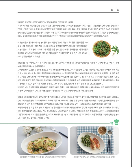 이제는 어른이 된 내가 따스한 봄바람이 불어오면 냉이부터 찾는다. 요리연구가란 직업을 가지고 있음에 봄에 나오는 여러 제철 음식을 두루두루 살펴봐야 하지만, 유독 그 진한 향에 홀렸는지 봄나물부터 찾게 된다. 마트에 가니 제철을 맞은 냉이, 달래, 미나리 등 각종 봄나물이 나란히 대기하고 있다. 비닐봉지로 꽁꽁 묶여 있음에도 강렬한 봄나물 향기가 폴폴 풍겨 나와 넓디넓은 마트 안이 봄 내음으로 채워진다.