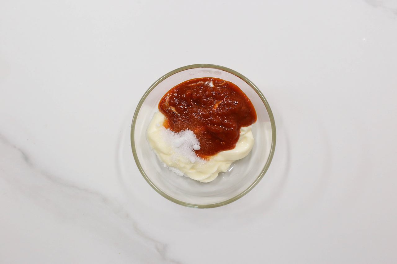 - 스리라차 마요네즈 소스 (마요네즈 4큰술, 스리라차 소스 4큰술, 설탕 1작은술)