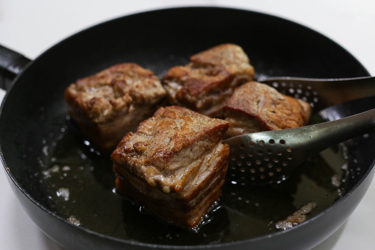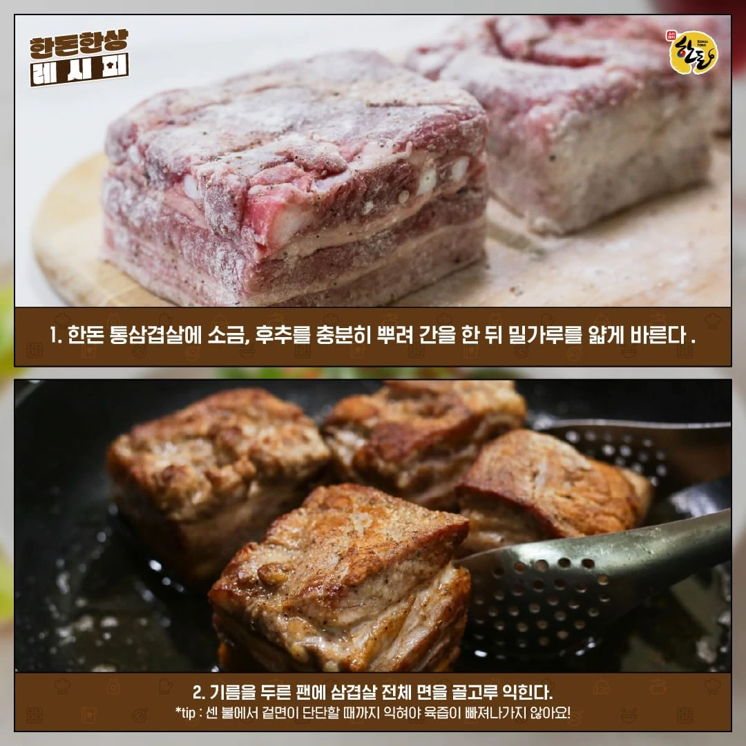 3. 기름을 두른 팬에 삼겹살 전체 면을 골고루 익힌다.