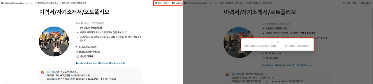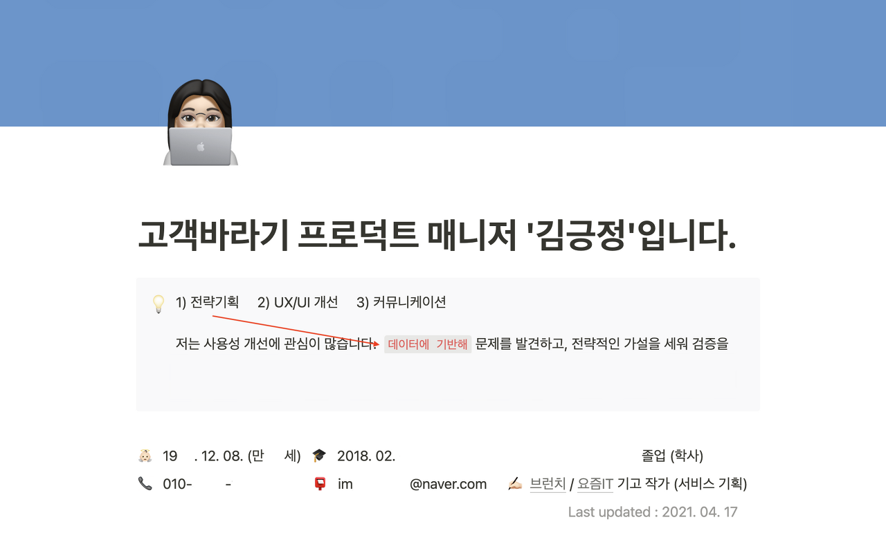 개인적으로 포트폴리오 역시 노션으로 만드는 것을 추천드려요.