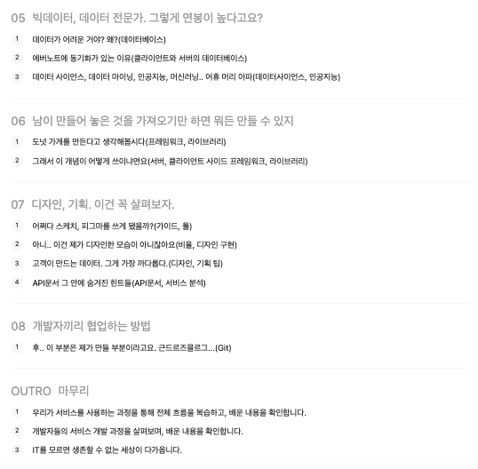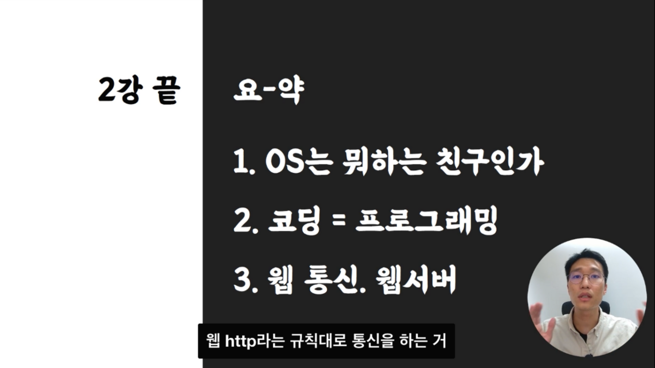 스파르타코딩클럽 대표님이신 이범규 튜터님이 직접 진행하시는 강의로 일단 엄청 재밌다. 유머러스하심! 카카오톡 광고에서 '서버가 어떻게 터졌을까요? 빵?!' 하시는 모습을 보고 취향저격이라 가입했다. 그리고 강의 마지막에는 두 번째 사진처럼 간단한 요약으로 마무리해주셔서 복습까지 완벽하다.