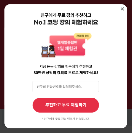 예를 들어 일단 무료 강의를 통해 회원가입이라는 어마어마한 산을 넘었다. 그리고 한 챕터씩 완강할 때마다, 포인트를 주고 리뷰를 받는다. 두 번째 사진처럼 재밌었다고 가장 긍정적인 평가를 줄 경우, 친구에게 추천을 유도한다. 추천하지 않고 이탈할 경우, 그 이후부터는 추천을 유도하지 않는다. 위 패턴을 반복해 모든 챕터를 완강하고 나면 NPS로 된 고객 설문 조사까지 시킨다. 넘나 촘촘한 것. (◕_◕)
