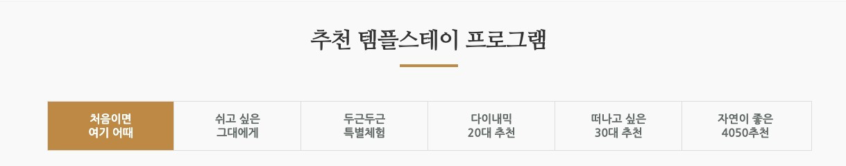 템플스테이가 최소 2주 전엔 신청해야 예약이 가능할 정도로 인기가 많은데, 예약 시스템이 오래전에 만든 자체 웹사이트라 상품 탐색과 비교 과정이 어렵다. 애초에 플로우 자체가 명확한 장소와 날짜, 인원을 선택해야만 해당 날짜에 예약이 가능한지를 알 수 있는 구조기 때문이다.
