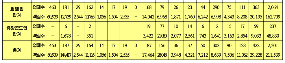 한국호텔업협회가 제공한 관광숙박업 등록현황 데이터에 따르면 2020년 말 기준, 호텔만 해도 총업체수는 2,301개이며, 1박 당 예약을 받을 수 있는 총 객실수는 211,539로 집계된다. 내가 생각한 것보다 템플스테이 시장 자체가 훨씬 작았던 것이다.