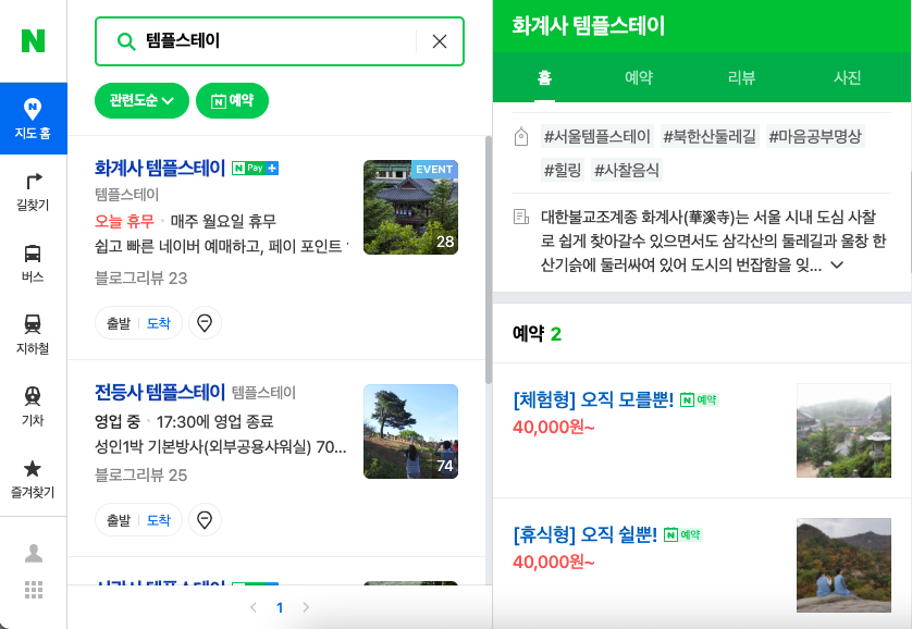 검색에 의해 노출되기 때문에 네이버에 ‘템플스테이’라고 검색하는 유저, 즉 정말 템플스테이 이용에 대한 확신이 있는 유저일 것이다. 또 네이버페이로 포인트를 모으는 유저일 경우 당연히 네이버 사용을 선호할 것이다.