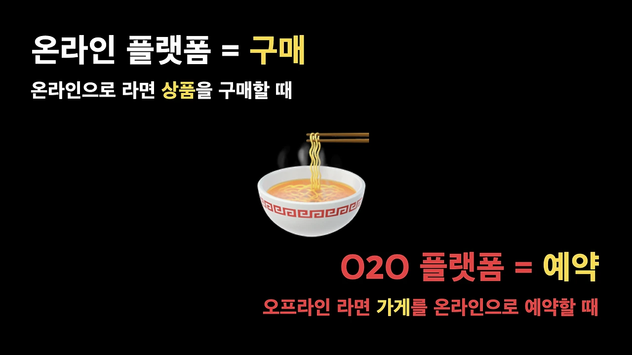 이때 한 개발자분이 나에게 기가 막힌 예시를 들어줬다. 클래스101(= 온라인 플랫폼)과 여기어때(= O2O 플랫폼). 둘 다 유명 셰프의 라면을 판매한다고 가정해보자.
