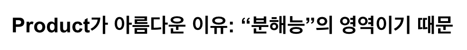 세션이 시작되고 얼마 지나지 않아, 발표 자료에 위와 같은 제목이 쓰여있는데 조금 놀랐습니다. 제품을 키워가기 위해 쪼개고 쪼개는 집요한 과정 그 자체를 '아름답다'라고 표현한 대목 때문입니다.