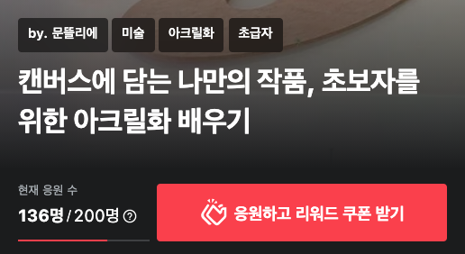 수요조사를 통해 수강생은 강사의 실력(포트폴리오), 강의 난이도, 커리큘럼, 수요 현황 등을 실시간으로 체크할 수 있고 미리 응원한다면 리워드 쿠폰도 받을 수 있기 때문에 나는 클래스101 수강생은 좋은 품질을 위해 충분히 기다릴 준비와 비용을 지불할 의사가 있다고 생각한다.