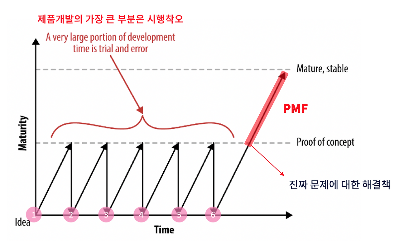 즉, PMF를 찾았다는 것은 현재 자사 제품이 강한 시장 수요를 충족할 수 있는 상황이라는 것.