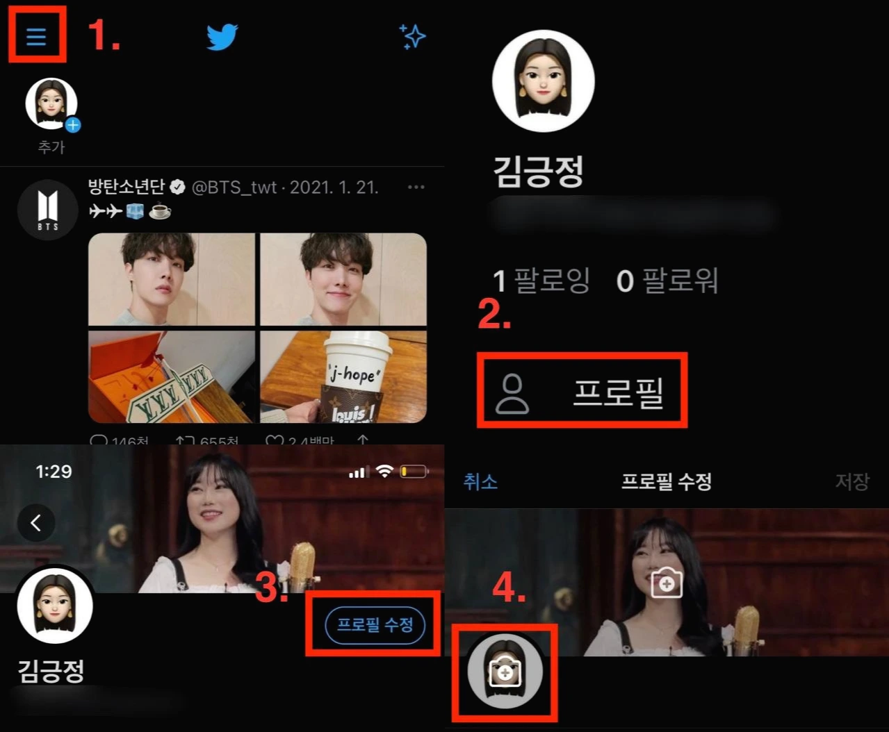 <힉의 법칙>의 경우 트위터와 클럽하우스의 프로필 사진 수정 과정을 비교해보았다.