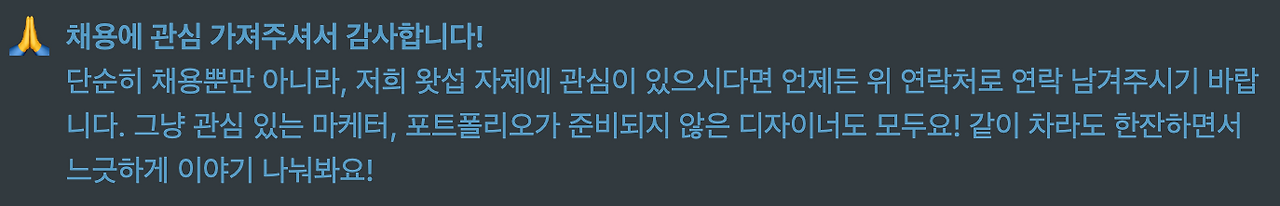 그렇게 과제로 왓섭의 카드 등록 플로우의 UX/UI를 개선했고, 조사 과정에서 어플뿐만 아니라 SNS 리뷰, 뉴스 댓글 등을 살펴보다 채용 홈페이지에서 아래와 같은 문구를 발견했다.