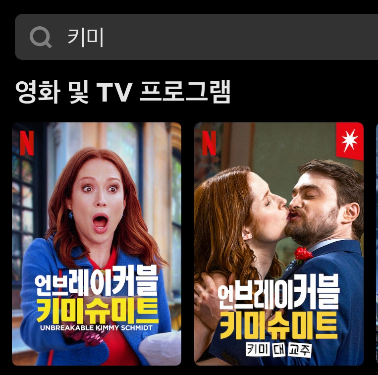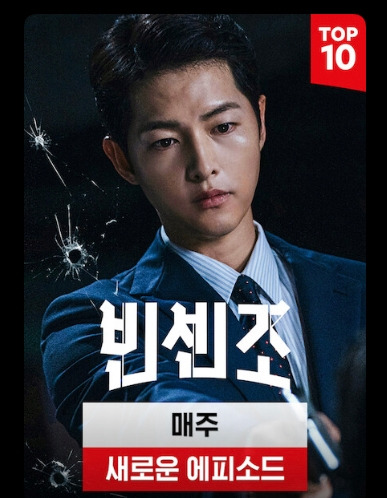 너무나도 당연하게 지나치는 넷플릭스의 썸네일 구조를 알고 나니 현재와 비교하지 않을 수 없었다. 그래서 요즘 재밌게 시청하고 있는 tvN [빈센조] 이미지를 준비했다. 사실 송중기의 빛남에 다른 건 눈에 들어오지 않지만 굳이 과거와 비교해보자면 [매주 새로운 에피소드]와 [새로운 에피소드]로 배지의 차이가 생긴 것, TOP 10 배지가 생긴 것 정도를 들 수 있다. (참고로 키미 슈미트는 표정만 봐도 알 수 있듯 극단적인 상황이 많아 호불호가 갈릴 것으로 예상된다. 그래도 나는 키미가 가진 순수함이 좋아 전 편을 다 보았다.)