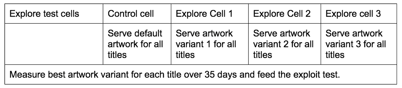 35일이 넘는 기간 동안 가장 우수한 성과를 보인 이미지를 'Exploit' 테스트 고객들에게 노출한다.