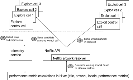 1. Netflix API에서 'Explore' 테스트의 각 셀 별로 이미지 후보들을 제공한다.