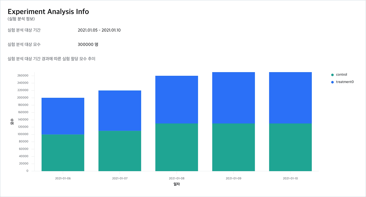 실험플랫폼이 가계부 확인을 위해 수동으로 A/B테스트를 설계할 때, 실험군 별 모수를 15만씩 잡은걸 보고 나는 평소 푸시 알림에 반응을 보이지 않는 고객군을 대상으로 하니 모수를 실험군 별 5만 명으로 잡았다. 그리고 충분한 데이터 수집을 위해 실험 기간은 2주로 정했는데, 다시 보니 뱅크샐러드는 5일 동안 30만 명에게 테스트하고 있었다... ʕʘ‿ʘʔ 이정도면 데이터를 맛보는 게 아니라 퍼먹는 수준 아닌가? 부럽다.