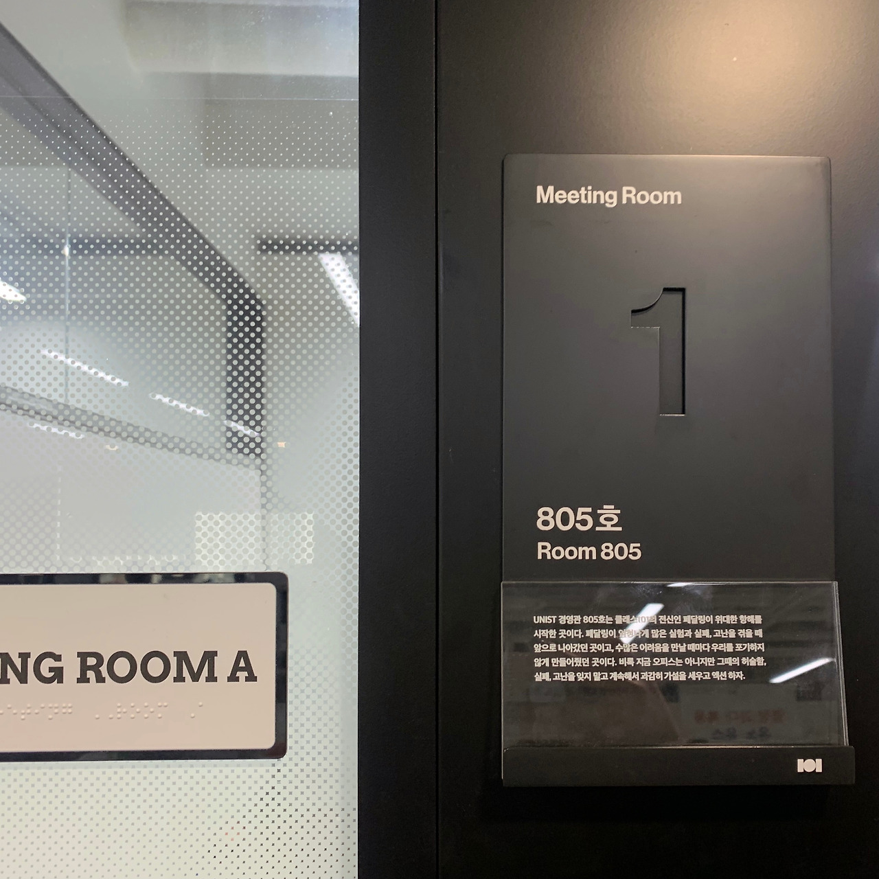 1번 미팅룸 [805호]는 클래스101의 전신인 페달링이 시작된 UNIST 경영관 805호에서 따왔다.