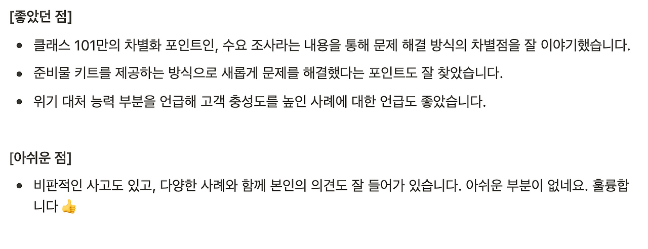평소에는 주어진 기업에 대해 조사하고 자신의 생각을 글로 써야 했는데, PMF와 사업가치에 대한 과제는 이해도를 높이면서도 객관적인 시선을 유지하기 위해 VC의 입장에서 글을 쓰도록 했다. 코드스테이츠 자료라 공개할 순 없지만, 택시를 타고 서울역에 내려 연세재단 세브란스 빌딩 18층에서 고지연 대표님을 만나 악수를 한다는 등 VC 역할에 몰입하기 위해 나름 치밀한 과몰입 시나리오가 짜여져있다 (ㅋㅋㅋ)