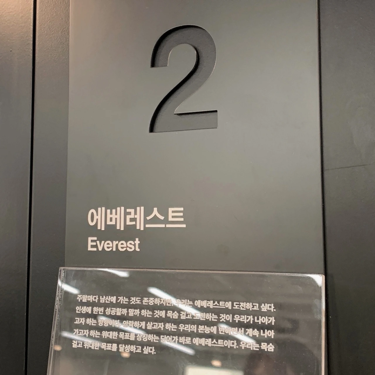 '에베레스트에 가고 싶은 마음을 빌딩 높이로 표현한 걸까' 싶을 만큼 빌딩이 높고, 부의 상징인 회전문이 있다. 그렇게 빙글빙글 들어가 18층에 도착해 전화를 드렸고, 바로 나와주셔서 회의실로 향했다!