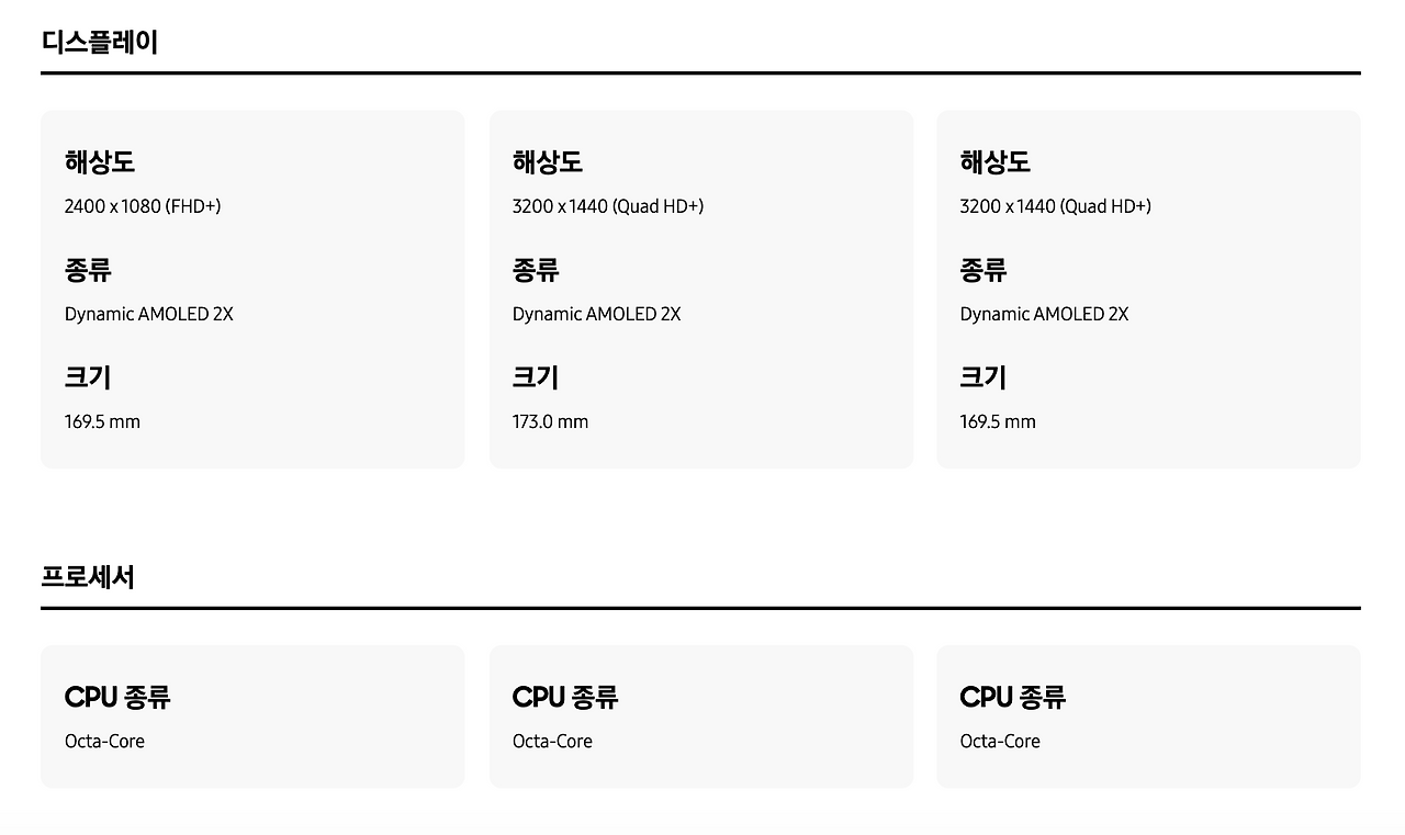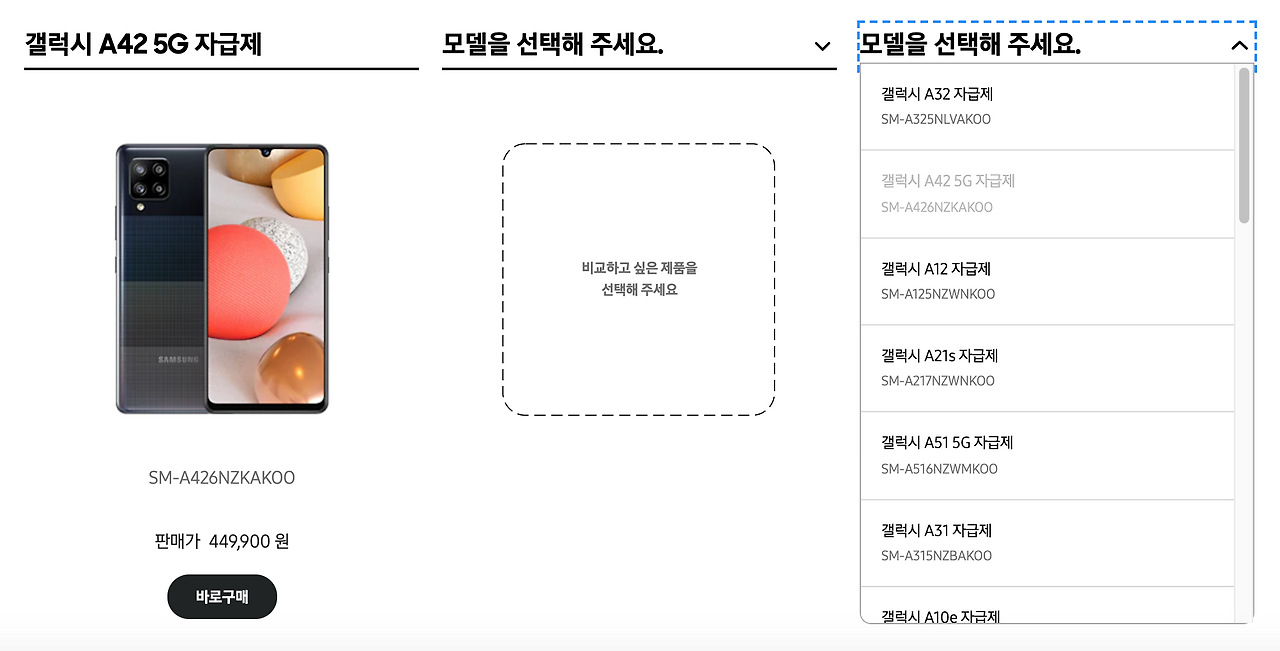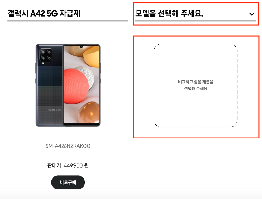 자동으로 보여지는 애플과 다르게 삼성전자는 수동으로 내가 직접 모델을 선택해서 비교할 수 있었다.