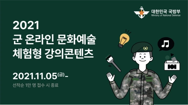 이번 프로그램은 온라인 기반 비대면 교육환경, 콘텐츠 플랫폼 활성화 등 최신 트렌드에 발맞춰 기획됐다. 클래스101은 공식 웹사이트 내 국방부 전용 페이지를 마련했으며 선착순 1만 명에게 참여 기회가 주어진다.