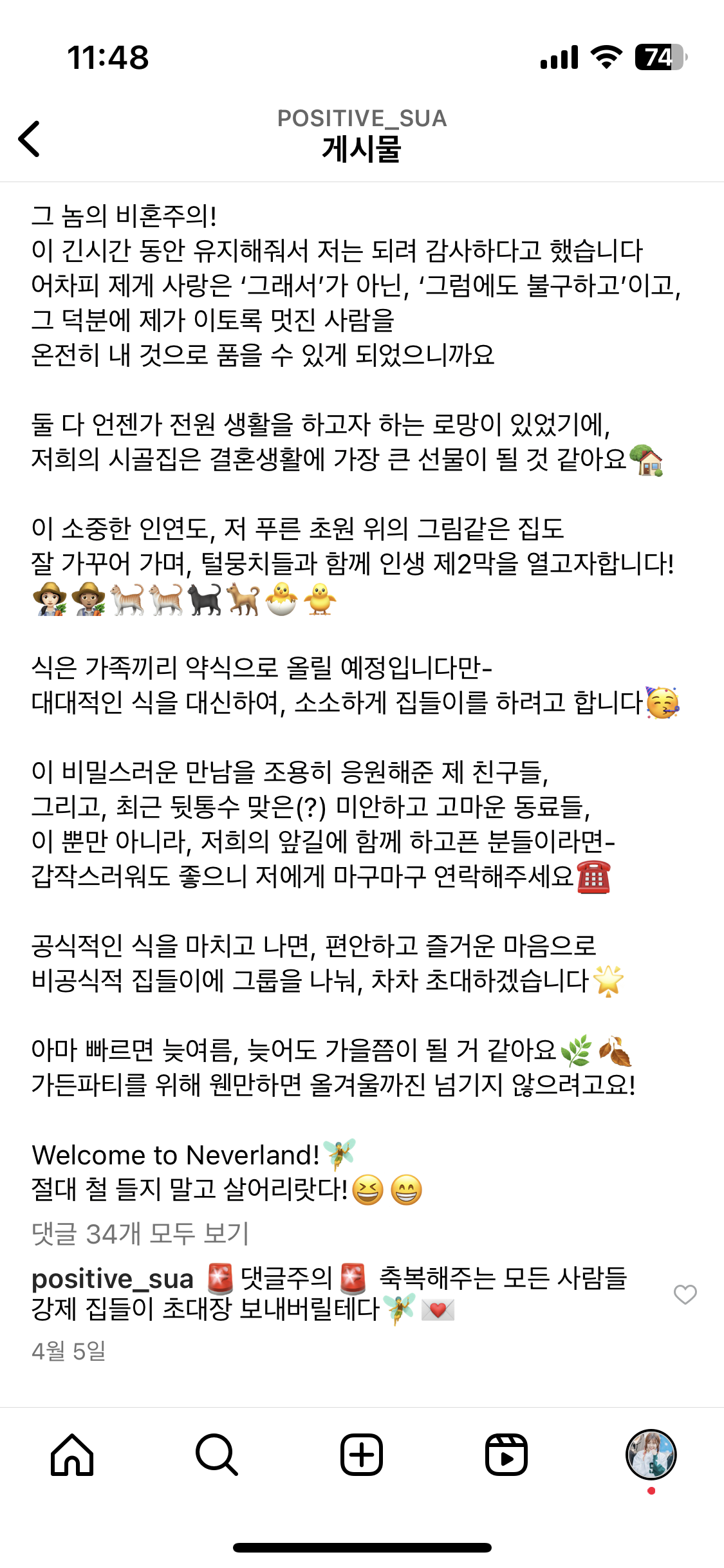 해서 다소 간지럽지만 그에 대한 저의 감상과 저희 부부의 결혼 준비 스토리가 이 이야기의 프롤로그가될 것 같습니다. 아래 글은 제가 제 친구와 지인들에게 2023년 4월 19일에 결혼을 깜짝 발표하며 썼던 글입니다.